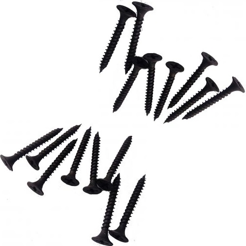 Multi-purpose screws for use on commercial and residential construction jobs. Typically used for attaching drywall, sheetrock, sheathing, Durock and Hardie Board to wood studs, interior wood to fixture applications or wood to wood. Black Phosphate Coated for improved paint and mud adhesion.