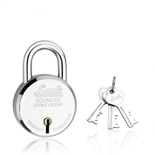 Link 65mm Round Lock Steel Body 50,000 Key Combinations Double Locking with 3 Keys, 1 Lock
