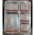 Compartment Plate SS 304 5 in 1 Rectangular 450-500gm Stainless Steel L37.4xW29.2xH3 CM